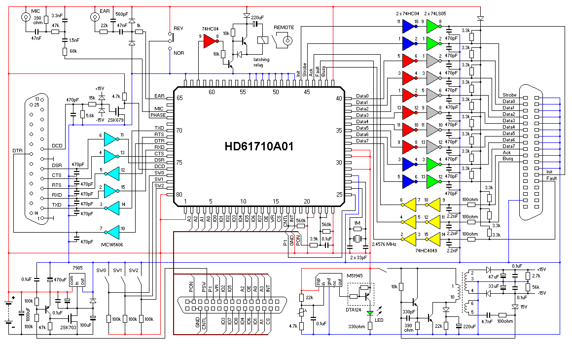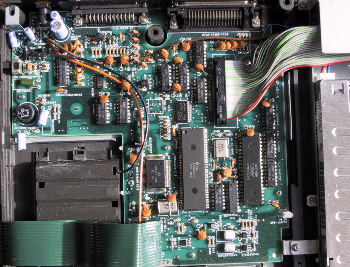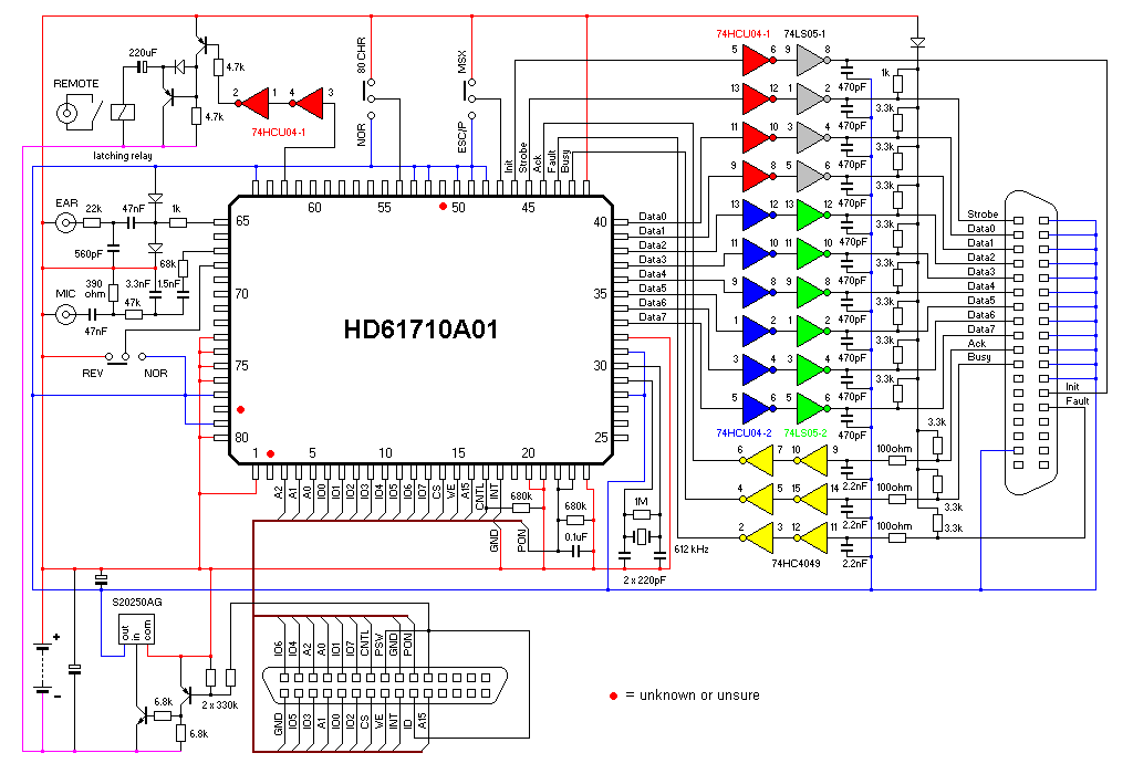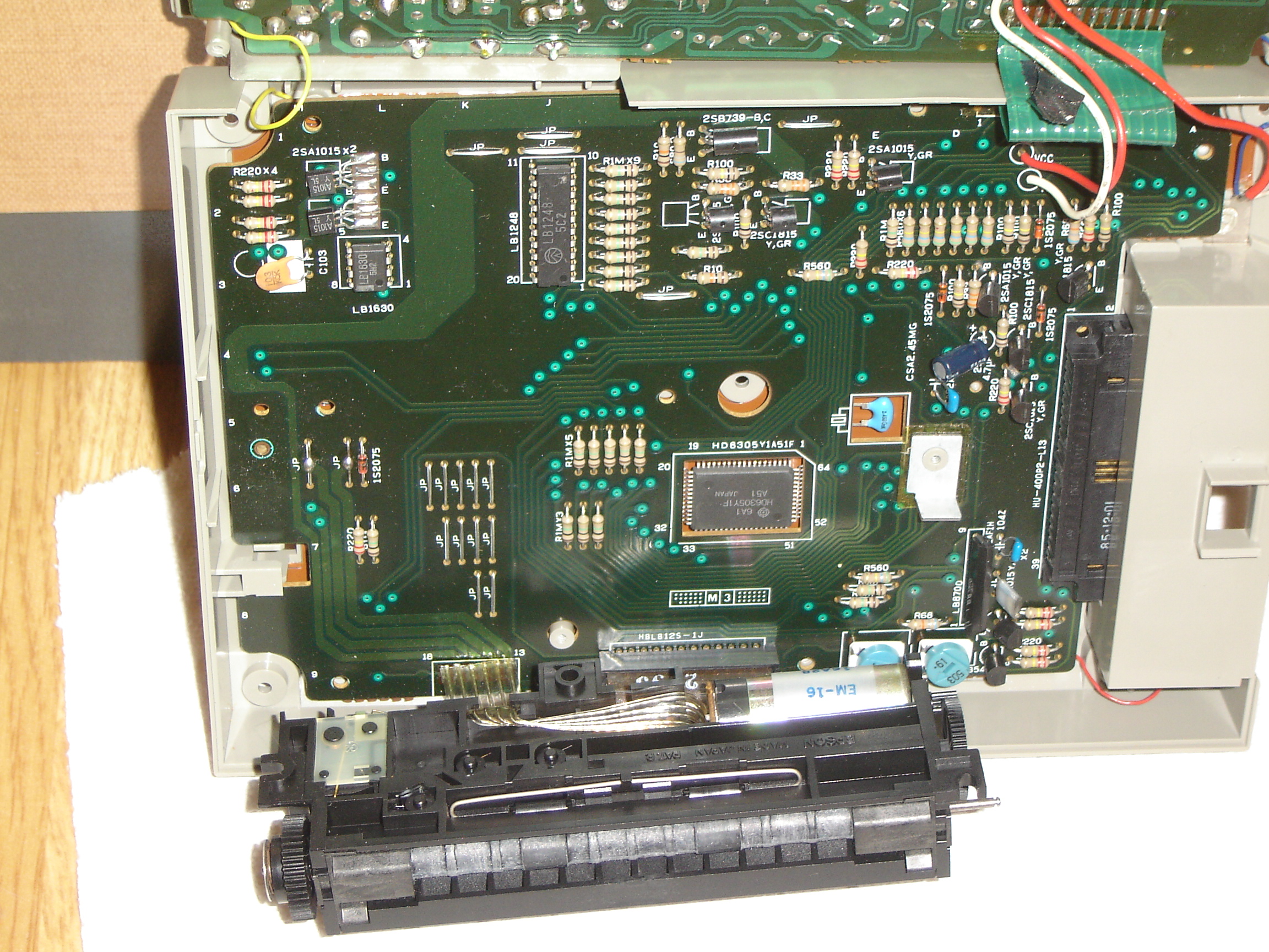 The design of this calculator is obviously based on the Casio FX-700P, but it appears to be an entirely different machine after all. It uses a 16-bit PDP-11 compatible microprocessor along with external RAM, program ROM and LCD controller. Such open architecture makes it an interesting object of hacking.