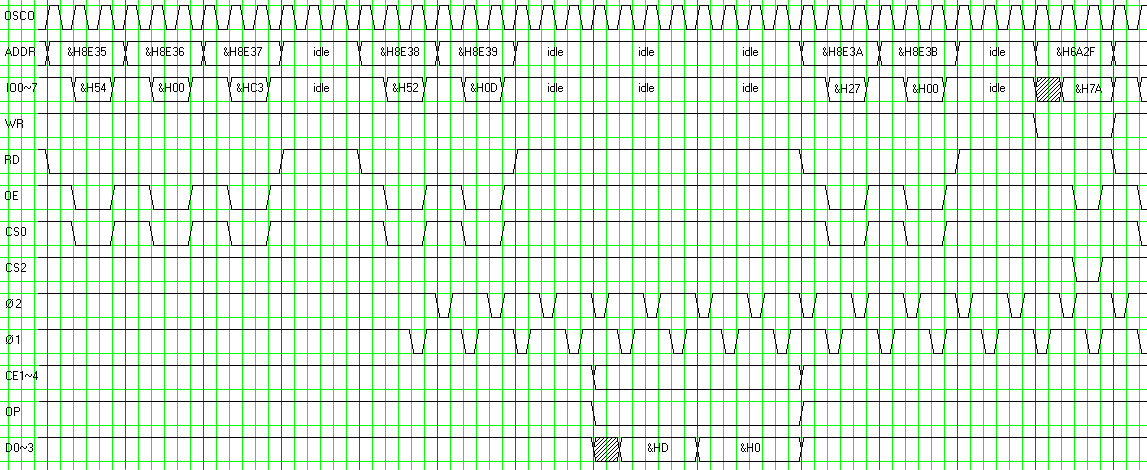 The diagram illustrates the system bus and the LCD port waveforms taken while executing following program:
